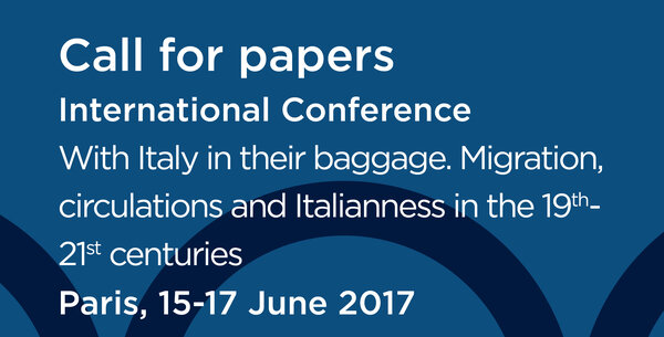 Dans le cadre de l’exposition Ciao Italia ! qui sera présentée au Musée national de l’immigration à Paris en 2017, le colloque international « L’Italie pour bagage. Migration, circulations et italianité XIXe-XXIe siècles » entend réunir en juin 2017 des chercheurs issus de différentes disciplines.