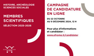 Nous vous informons que la bibliothèque ainsi que tous les sites de l'École française de Rome seront fermés pour les congés d’hiver, du lundi 23 décembre 2024 au soir au mercredi 1er janvier 2025 inclus (réouverture le jeudi 2 janvier 2025).