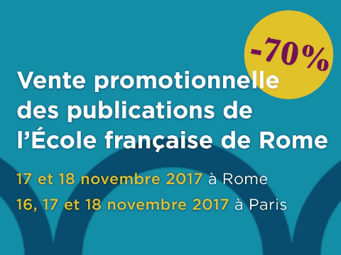 L'École française de Rome, en collaboration avec la Librairie de Boccard à Paris, organise une vente promotionnelle de livres. RÉDUCTION EXCEPTIONNELLE DE 70% SUR TOUS LES TITRES DISPONIBLES ET PUBLIÉS ENTRE 1972 ET 2012