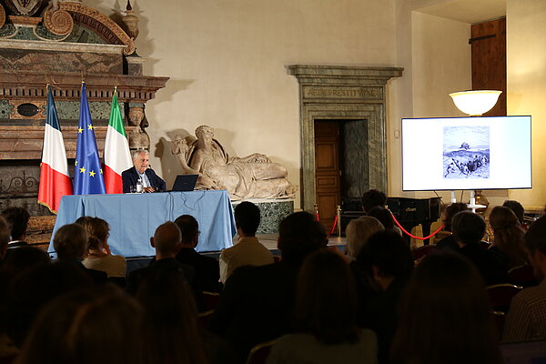 La première conférence de Dionigi Albera pour le cycle « Lectures méditerranéennes », palais Farnèse, 13 octobre 2025 (© EFR)