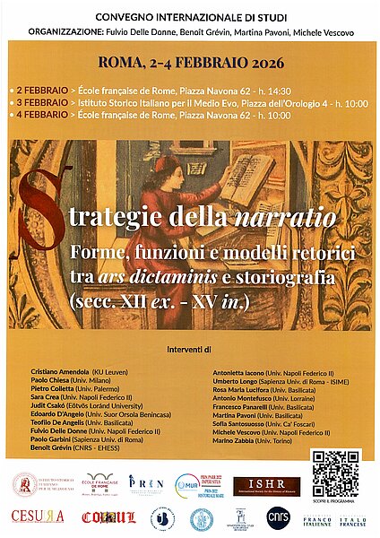 16:30 Benoît Grévin (CNRS-EHESS), Riflessioni sulle categorie di narratio e di historia nelle artes dictandi e nei dictamina