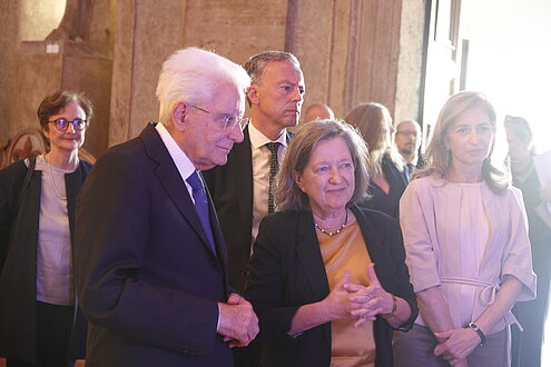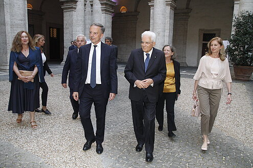À l'occasion du 150e anniversaire de la création de l'École française de Rome et de son installation, au côté de l'ambassade de France en Italie, au palais Farnèse, le Président de la République italienne Sergio Mattarella nous a fait l'honneur de sa visite.
