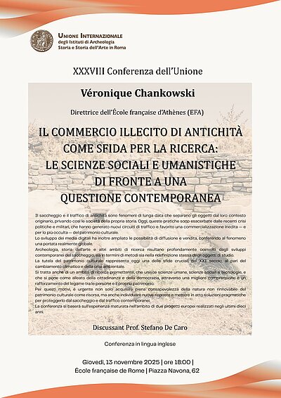 Il saccheggio e il traffico di antichità è un fenomeno di lunga data che separa gli oggetti dal loro contesto e priva le società della loro storia. Oggi è esacerbato dalle recenti crisi politiche e militari, che hanno creato nuovi circuiti, portando a una commercializzazione senza precedenti, ma per lo più nascosta, del patrimonio culturale. Lo sviluppo dei media digitali ha inoltre aumentato la capacità di commercializzazione e distribuzione, rendendo il fenomeno globale. L’archeologia, la storia dell’arte e altri campi di ricerca sono interessati dallo sviluppo contemporaneo del saccheggio, sia nei metodi che nella definizione degli oggetti di studio. La protezione del patrimonio culturale è una delle maggiori sfide del XXI secolo, insieme al cambiamento climatico e all’ambiente. È anche un campo di ricerca promettente, che riunisce le discipline umanistiche, le scienze sociali e le tecnologie, nonché un alleato della cittadinanza e della democrazia attraverso una migliore comprensione e il rafforzamento del legame tra le persone e il patrimonio. Per questi motivi, è urgente non solo essere consapevoli della natura non rinnovabile del patrimonio culturale come risorsa, ma anche trovare nuove risposte e attuare soluzioni pragmatiche per proteggere il patrimonio culturale dal saccheggio e dal traffico contemporanei. La conferenza si baserà sull’esperienza di due progetti europei realizzati negli ultimi dieci anni.
