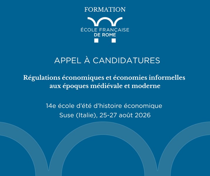 La 14e école d’été d’histoire économique qui se réunira à Suse (Piémont, Italie) les 25, 26 et 27 août 2026 aura pour thème « Régulations économiques et économies informelles aux époques médiévale et moderne ». Cette thématique permettra de poursuivre et d’approfondir celles qui ont été développées les années précédentes (la valeur des choses, la pauvreté, les biens communs, les moyens de paiement, la qualité, l’organisation du travail, les écritures de l’économie, entreprendre, la circulation des savoirs, le risque, les espaces du commerce, les économies de la nature, la guerre).