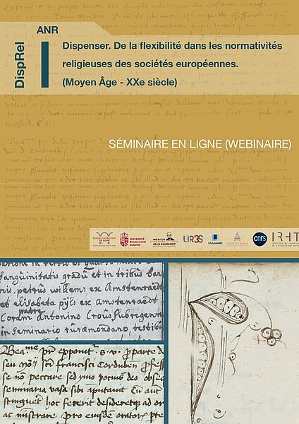Le séminaire de l’ANR DispRel a pour objectif d’étudier la dispense du Moyen Âge au XXe siècle, dans l’islam, le judaïsme et le catholicisme. La dispense peut être définie, au sens large, comme une dérogation ou une exemption accordée par une autorité religieuse permettant à un fidèle, dans certaines circonstances, de ne pas se conformer aux règles de sa religion (en l’autorisant par exemple, à ne respecter le jeûne, ne pas accomplir un pèlerinage ou à se marier en dépit d’un empêchement juridique).