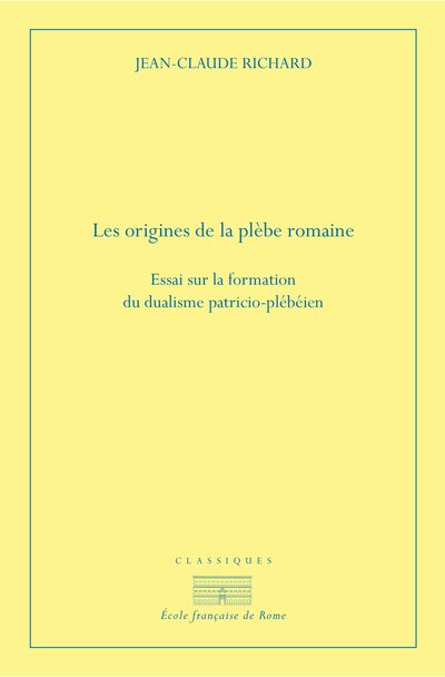 Les origines de la plèbe romaine. Essai sur la formation du dualisme patricio-plébéien, par Jean-Claude Richard